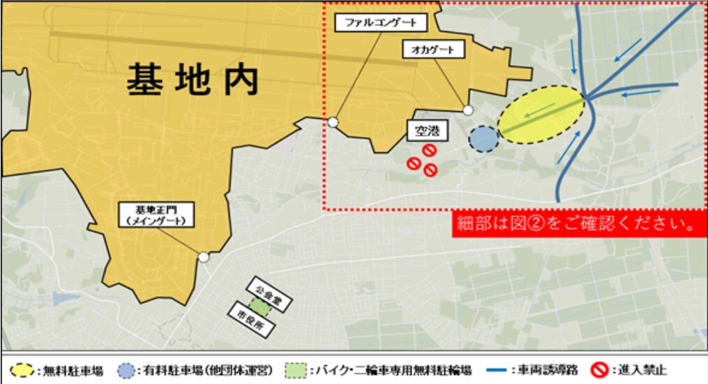 臨時駐車場の最新情報については、基地外駐車場(三沢基地公式ホームページ)をご確認ください。