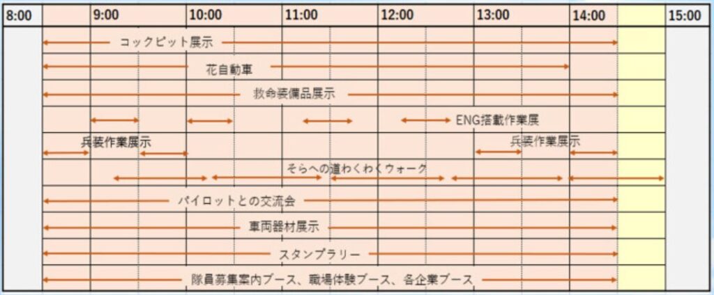 どんな航空ショーが見られるのか、基地内イベントでは何が行われるかなどスケジュールが気になりますね。