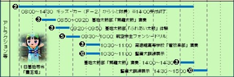 | 基地太鼓部「昇龍太鼓」演奏 | ①8:50~9:20 ②14:00~14:30 |